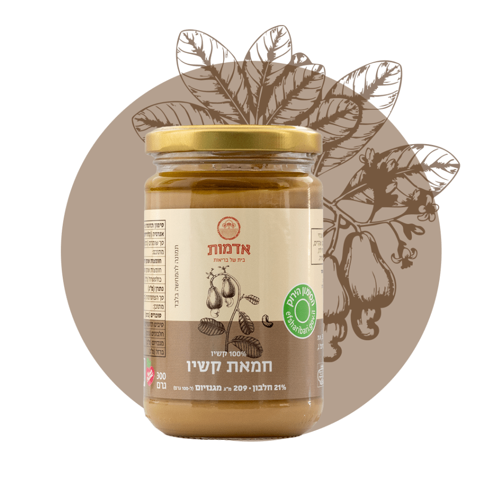 חמאת הקשיו של אדמות עשויה מ־100% אגוזי קשיו טבעיים – ללא תוספת סוכר, ללא חומרים משמרים וללא עיבוד מיותר